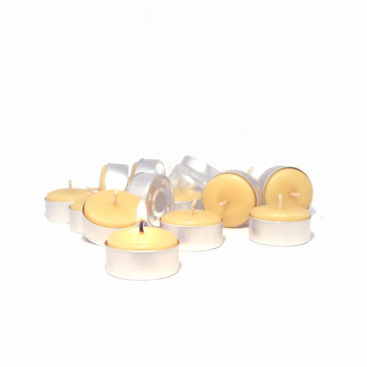 Illuminate your surroundings with Queen B’s tealight candles, crafted from 100% pure Australian beeswax. These tealights burn cleanly for 4 to 5 hours, emitting a soft, honeyed fragrance and a warm, golden light. Encased in metal cups, they allow the flame to shine beautifully, enhancing any setting. Ideal for creating a cozy ambiance, these tealights are a testament to sustainable elegance.