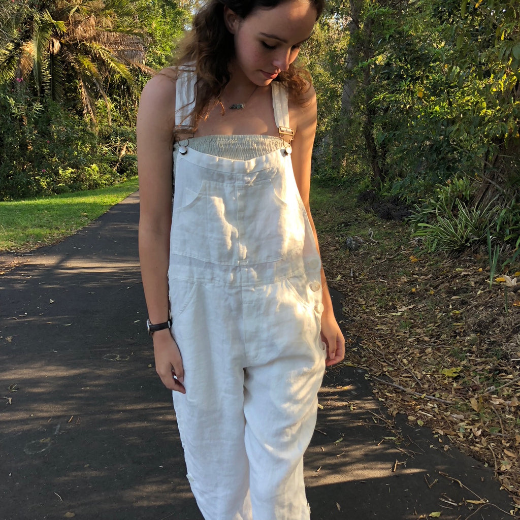 Rustic Linen Overalls - Antique White