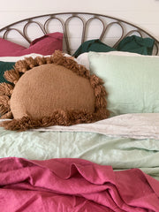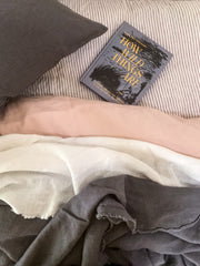 Rustic linen pillowcases featuring raw edges will sit perfectly with our raw edge rustic blanket.