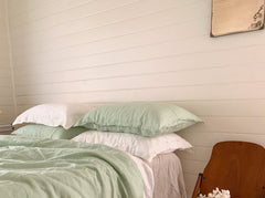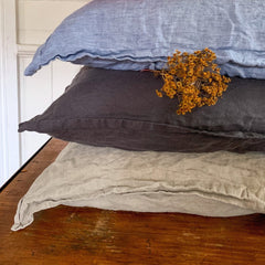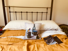 Add our frayed-edge pillowcases, a rustic linen blanket, or a soft linen quilt for that quirky touch or to create your comfort zone.