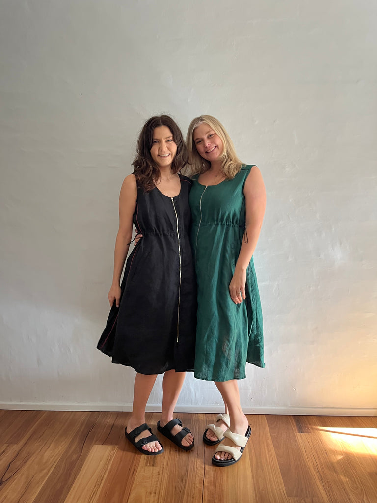 Effortless, modern, and endlessly wearable — this zipper-front dress is designed for comfort and style in equal measure. Made from our signature 100% eco-luxury linen, it features a clean front zip closure, an adjustable elastic toggle waist for a personalised fit, and a softly structured silhouette that moves with you.