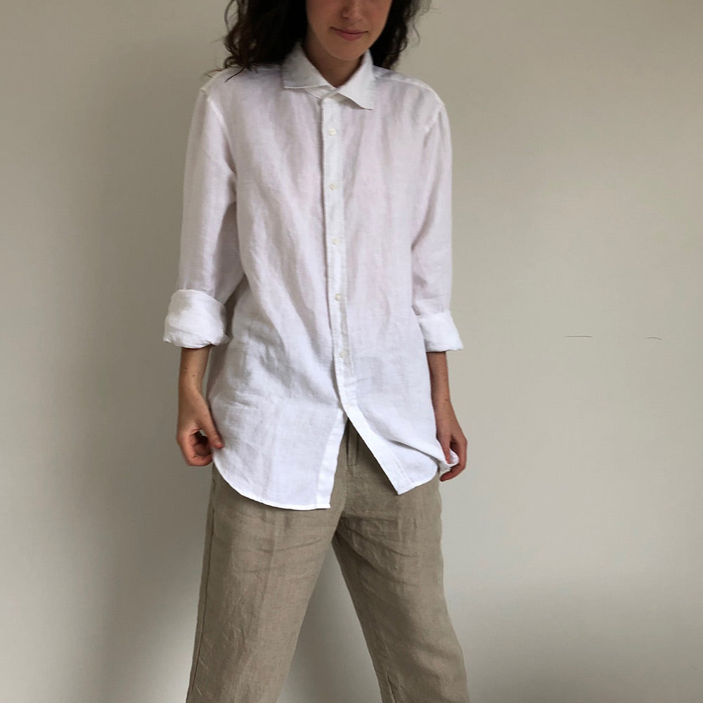 Absolute comfort for all shapes and sizes. This loose-fitting, traditional men's linen shirt has shell buttons and long-sleeves with beautifully styled cuffs. As popular with women as men.