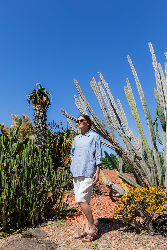 Pedal pusher style, knee length shorts. Side and back pockets. Made from 100% French flax linen.