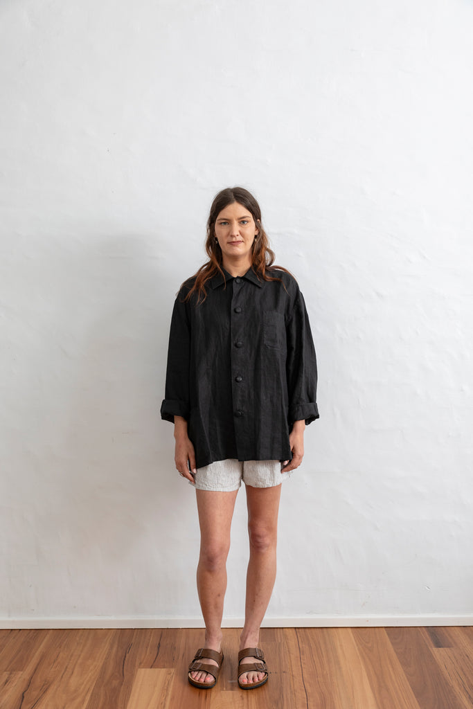 A boxy style linen jacket made from 100% french flax linen.