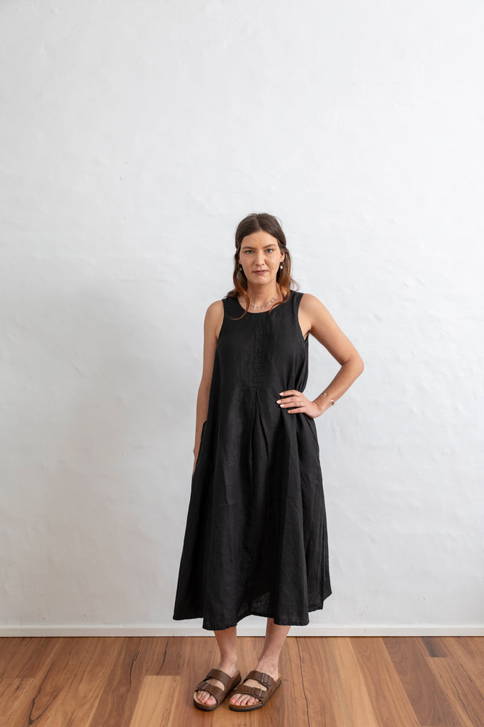 This dress is a long A line shape, made from 100% soft luxurious french flax linen.