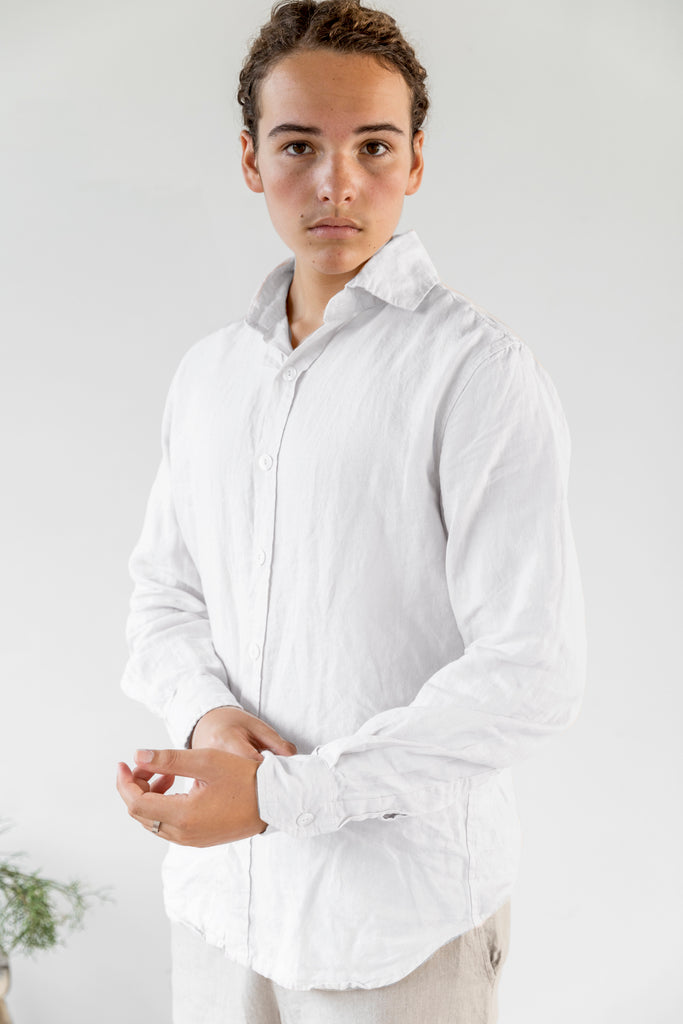 CLEARANCE: Unisex Collared Linen Shirt - White
