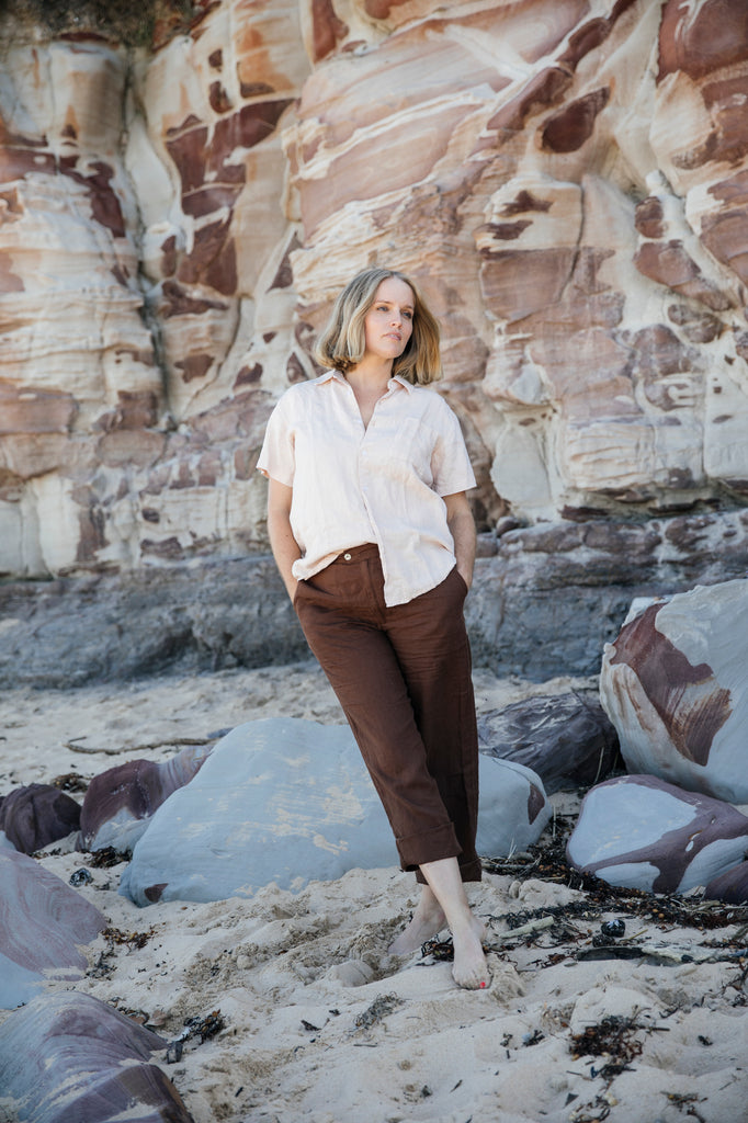 They feature side pockets with one buttoned back pocket and a front zip. Couple with our linen Bernie Blazer to complete a chic casual linen suit.